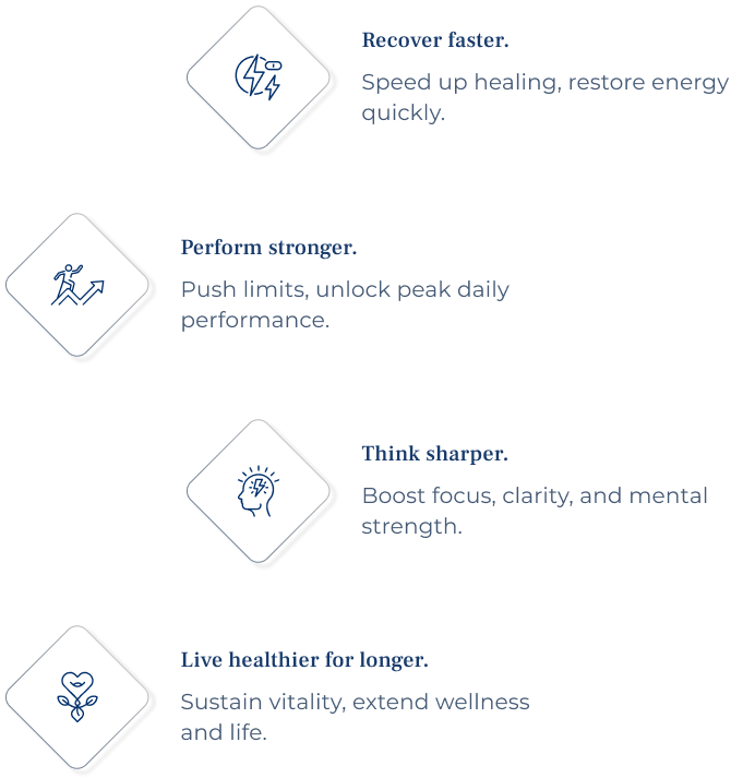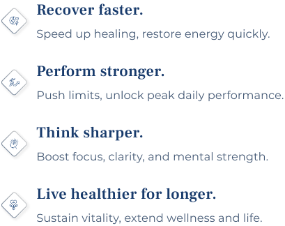Holistic ecosystem → from muscle recovery to brain health, from daily energy to long-term vitality.